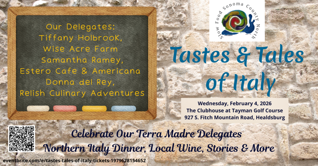 Slow Food CA-Sonoma County North is a chapter of Slow Food USA, a 501(c)3 non-profit organization